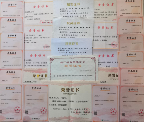 本科期間,C4-317的四位同學都成績前茅、碩果不斷,累計取得各級各類獎項40余項,其中獲得國家級、省級獎學金及優秀學生獎學金及榮譽稱號20余項,創新創業類獎項10余項。除此之外,他們還發表了多篇高水平論文,其中,胡鑫以共同第一作者發表SCI一區高水平論文一篇,他維帥以第二作者分別發表SCI一區、SCI二區論文各一篇。宿舍四人都在各自擅長的領域閃閃發光,屢創佳績。