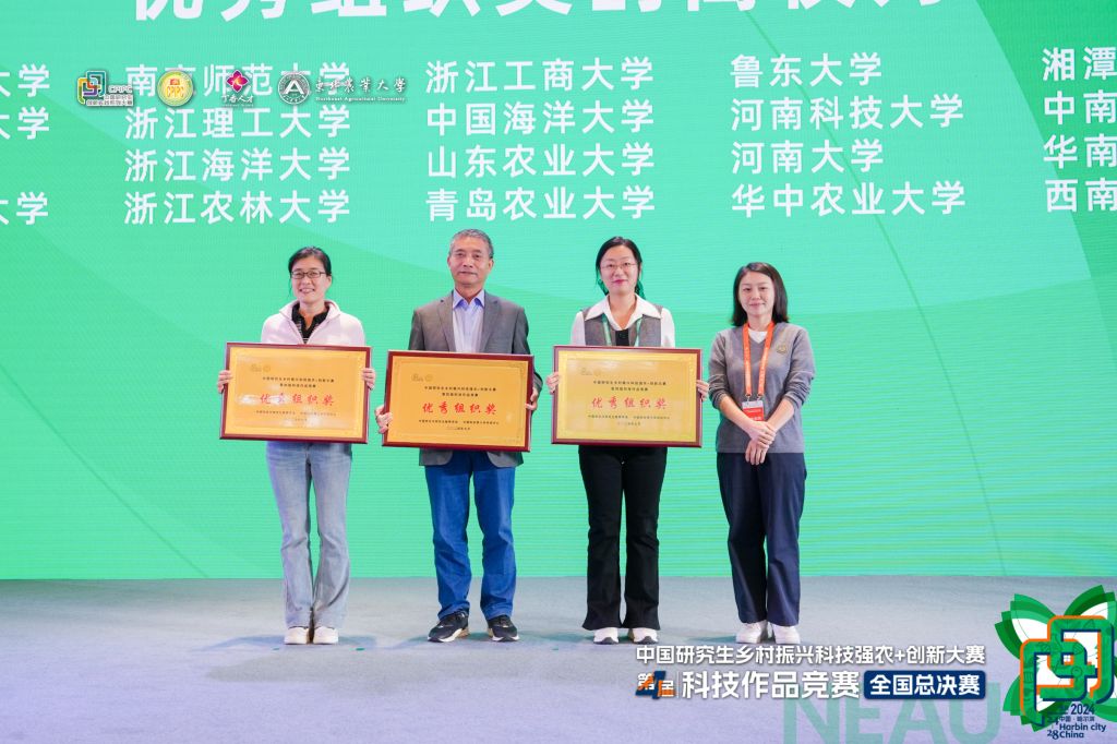 9月24日至28日,中國研究生鄉村振興科技強農+創新大賽第四屆科技作品競賽全國總決賽在哈爾濱舉行。我校選送的6件作品中共有4項獲獎,其中一等獎2項、二等獎1項,三等獎1項。4位老師獲評“優秀指導教師”榮譽稱號,我校再次榮獲“優秀組織單位”榮譽稱號。