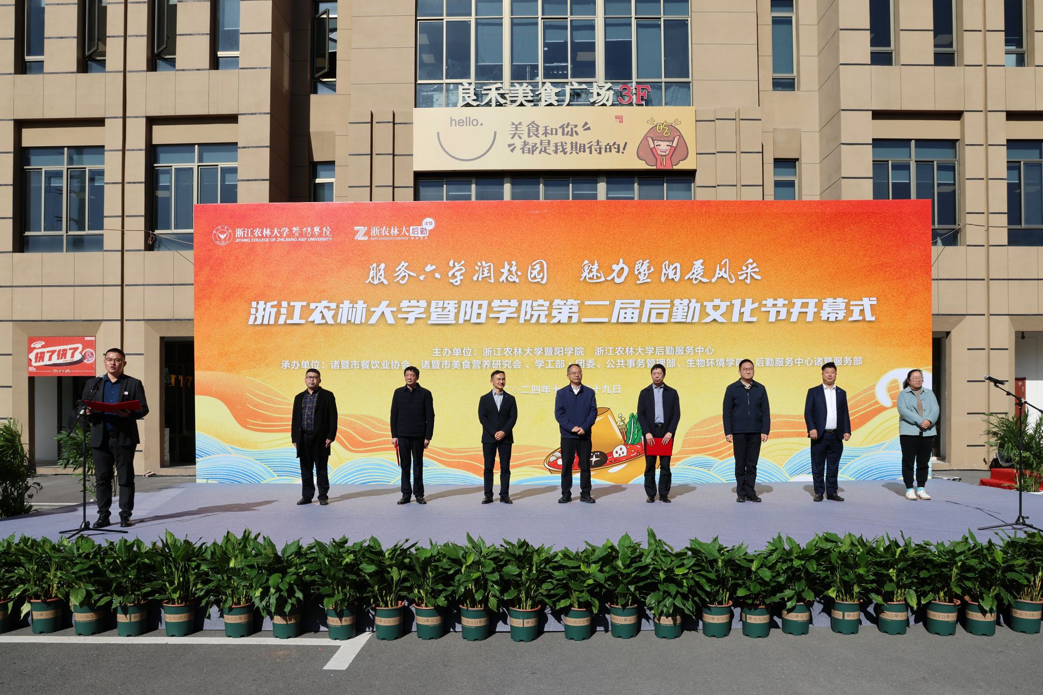 11月29日,浙江農(nóng)林大學(xué)暨陽學(xué)院第二屆后勤文化節(jié)開幕式在暨陽學(xué)院二食堂廣場舉行。副校長胡祖吉出席開幕式,暨陽學(xué)院、后勤中心負責(zé)人,諸暨市餐飲業(yè)協(xié)會會長斯華民等參加開幕式。