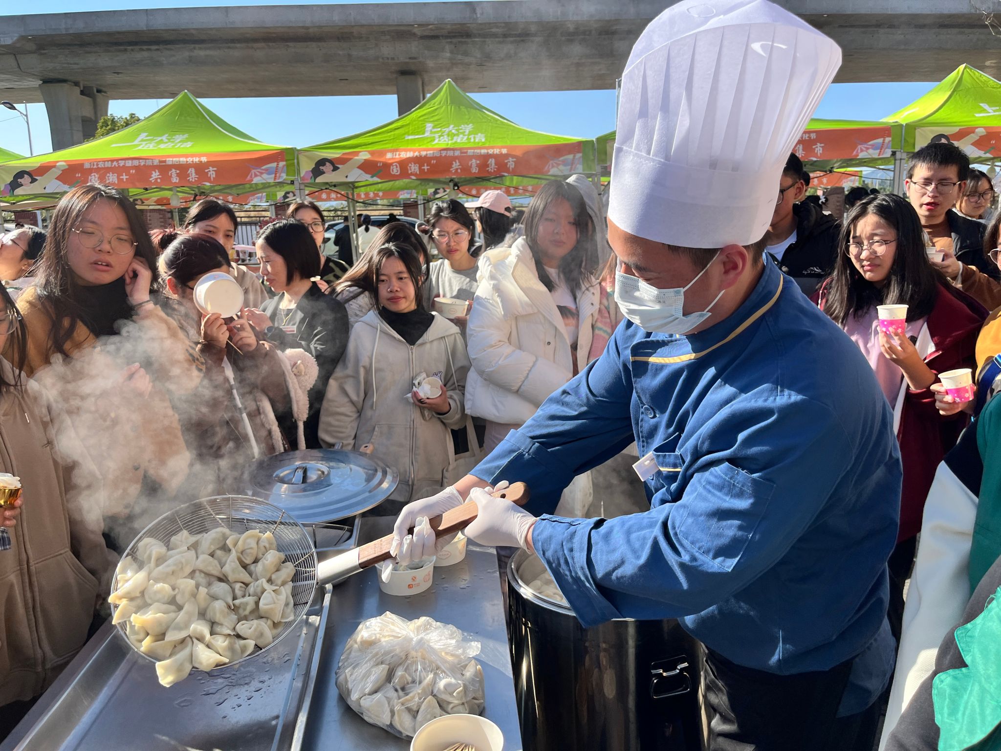 胡祖吉宣布文化節(jié)開幕。本次開幕式以食為媒,民俗搭臺,共設(shè)四個板塊,分別是“非遺+”傳統(tǒng)美食、“民俗+”千人餃子宴、“國潮+”共富集市、“趣味+”互動游戲。