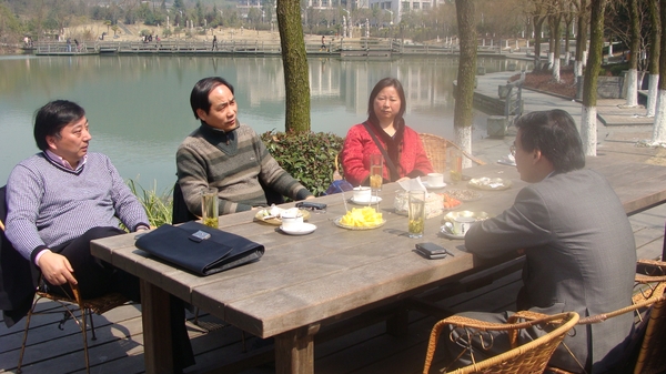 校長(zhǎng)周國(guó)模、副校長(zhǎng)金佩華親自會(huì)見了客人,雙方就如何推動(dòng)兩??蒲?、教學(xué)合作,建立伙伴關(guān)系,進(jìn)行了深入探討,達(dá)成了共識(shí)。