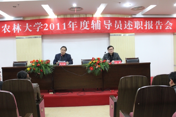 浙農林大新聞網訊 為科學評價輔導員日常工作,激勵和促進輔導員不斷提高政治素質和業務水平,充分發揮輔導員的工作積極性與主動性,交流經驗,表彰先進,1月4日下午,學校召開2011年度輔導員述職報告會。組織部、宣傳部、學工部、保衛處、團委等部門相關負責人,各學院學生工作負責人、全體輔導員和學工部人員100余人參加了輔導員述職報告會。