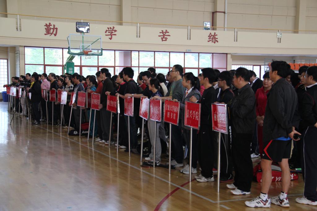 浙農林大新聞網訊 十月的浙農林大,秋高氣爽,碩果飄香。10月27日上午,由我校承辦的2011年浙江省本科院校圖書館“讀秀杯”羽毛球賽在我校籃球館羽毛球賽場拉開序幕。浙江省教育廳高教處副處長韓天琪,浙江農林大學副校長張立欽,浙江省高校圖工委副主任兼秘書長、浙江大學副館長章云蘭,浙江農林大學黨委委員、工會主席汪士華,浙江省高校圖工委副主任、浙江工業(yè)大學圖書館館長何立民,浙江省高校圖工委副主任、浙江大學副館長馬景娣,及來自全省26支代表隊的130余名運動員參加了開幕式。開幕式由圖書館館長、現(xiàn)代教育技術中心主任王長金主持。