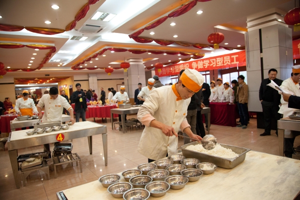 本屆飲食文化節以“打造品質飲食 共享快樂滋味”為主題,技能比武有冬瓜去皮、混合刀功、包餃子、刀切、電腦輸單、物資驗收、打飯、心算、中式擺臺九個項目,在展示的同時,更是對員工的專業技能是一次檢驗。