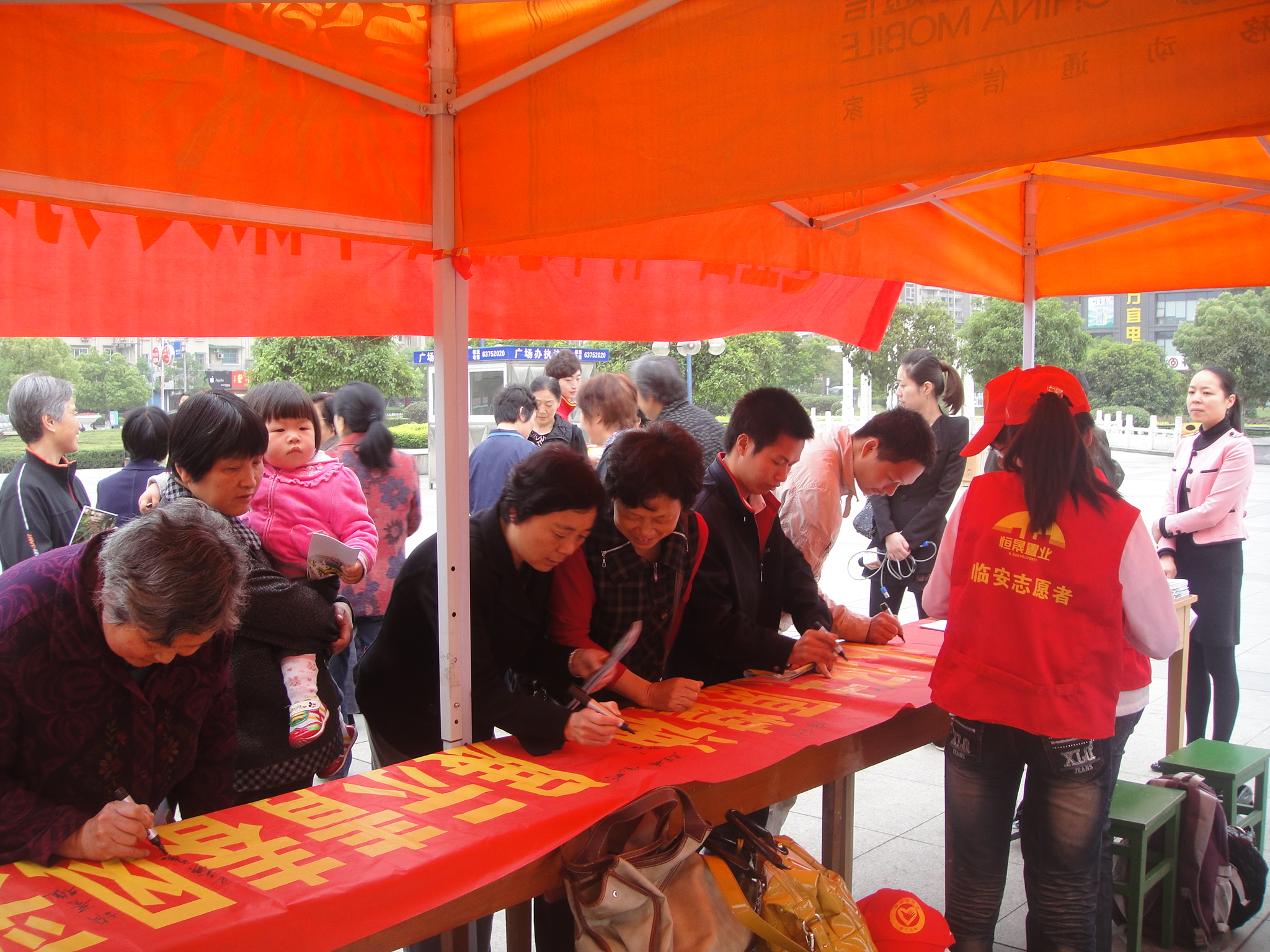 5月4日上午,由校團委和臨安團市委共同主辦的“弘揚志愿者精神,展示青春風采,環保文明我先行”暨迎“五四”青年志愿者環保文明宣傳招募活動在臨安市人民廣場火熱舉行。校青協的志愿者們向市民們講解環保文明知識,發放環保文明宣傳手冊,倡導低碳環保行為。市民們也停下腳步,拿起火鉗、垃圾桶等工具,撿拾周邊的垃圾并進行分類,親身參與到環保行動中,爭做環保志愿者。