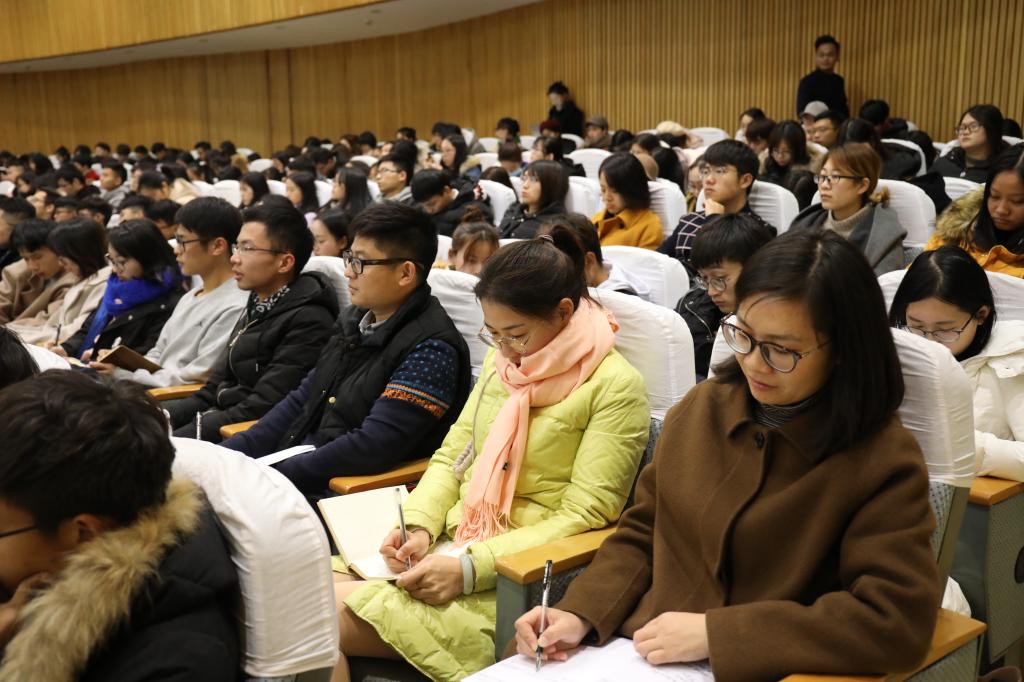 12月14下午,由中共浙江省委教育工作委員會主辦的學習宣傳貫徹黨的十九大精神——浙江省高校優秀輔導員“校園巡講”活動在我校圖書館第一報告廳舉行。校黨委副書記史永安出席活動并講話,校黨委委員、宣傳部長胡祖吉以及學工部、研工部、團委負責人,各學院分管學生工作負責人,全體輔導員和500多名學生代表參加巡講會。
