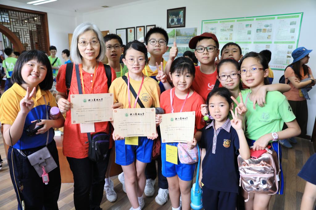 小學生們來到智能實驗樓,聽取國家重點實驗室相關情況的介紹,包括發展歷程、研究內容、科研團隊、科技成果等。接著,小學生們跟隨講解員先后來到森林文化館、植物組培室、翠竹園,很多小朋友是第一次近距離看到山核桃、香榧、毛竹、南方紅豆杉、光皮樺等實物和豐富多彩的生態科技文化產品,驚奇不已。香港小學生了解到植物從“試管嬰兒”到“開花結果”的生長發育過程,直觀感受了實驗室濃厚的科學氛圍。在翠竹園,看到剛剛出土的竹筍,看到形態迥異的竹種,小學生們非常興奮,視野得到擴展。