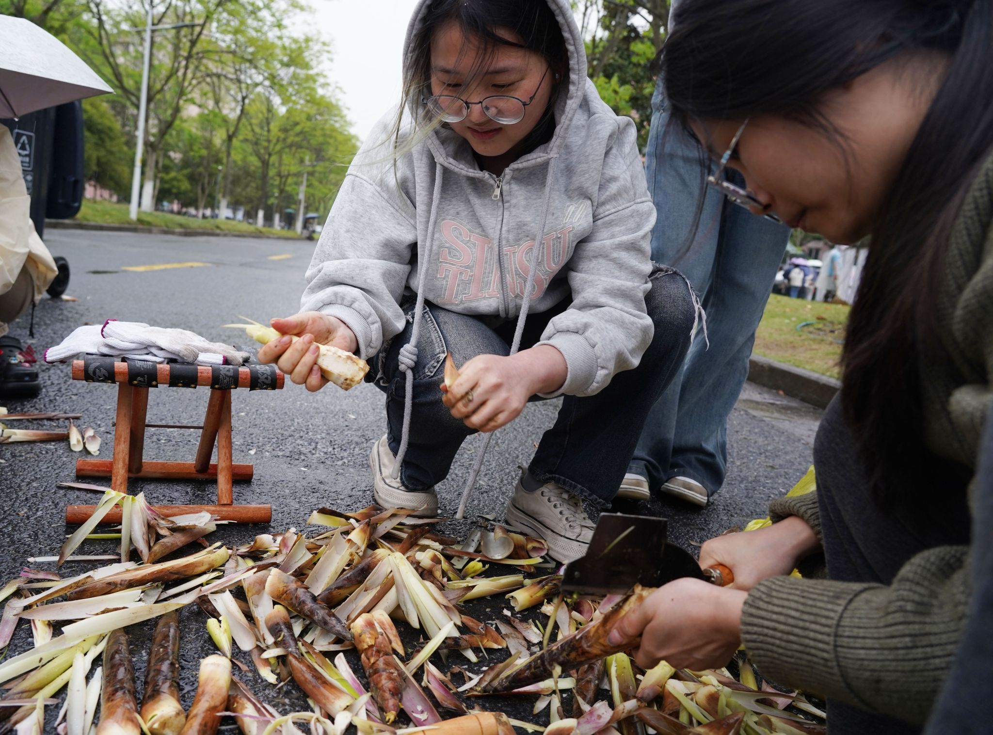 隨著一聲“開鍋!”鐵鍋的蓋子正式開啟,在場的千名師生人手一份,共同品嘗剛剛出鍋的6道竹筍菜肴,感受這來自春天的味道。隨后,浙江農林大學2025年筍宴正式啟幕:數千名師生在這里參與剝筍比賽、學燒不同口味的筍菜、品嘗各種竹筍佳肴,體驗竹子領域的最新科技成果,欣賞竹材設計的工藝品,感受竹詩詞竹音樂等竹文化。