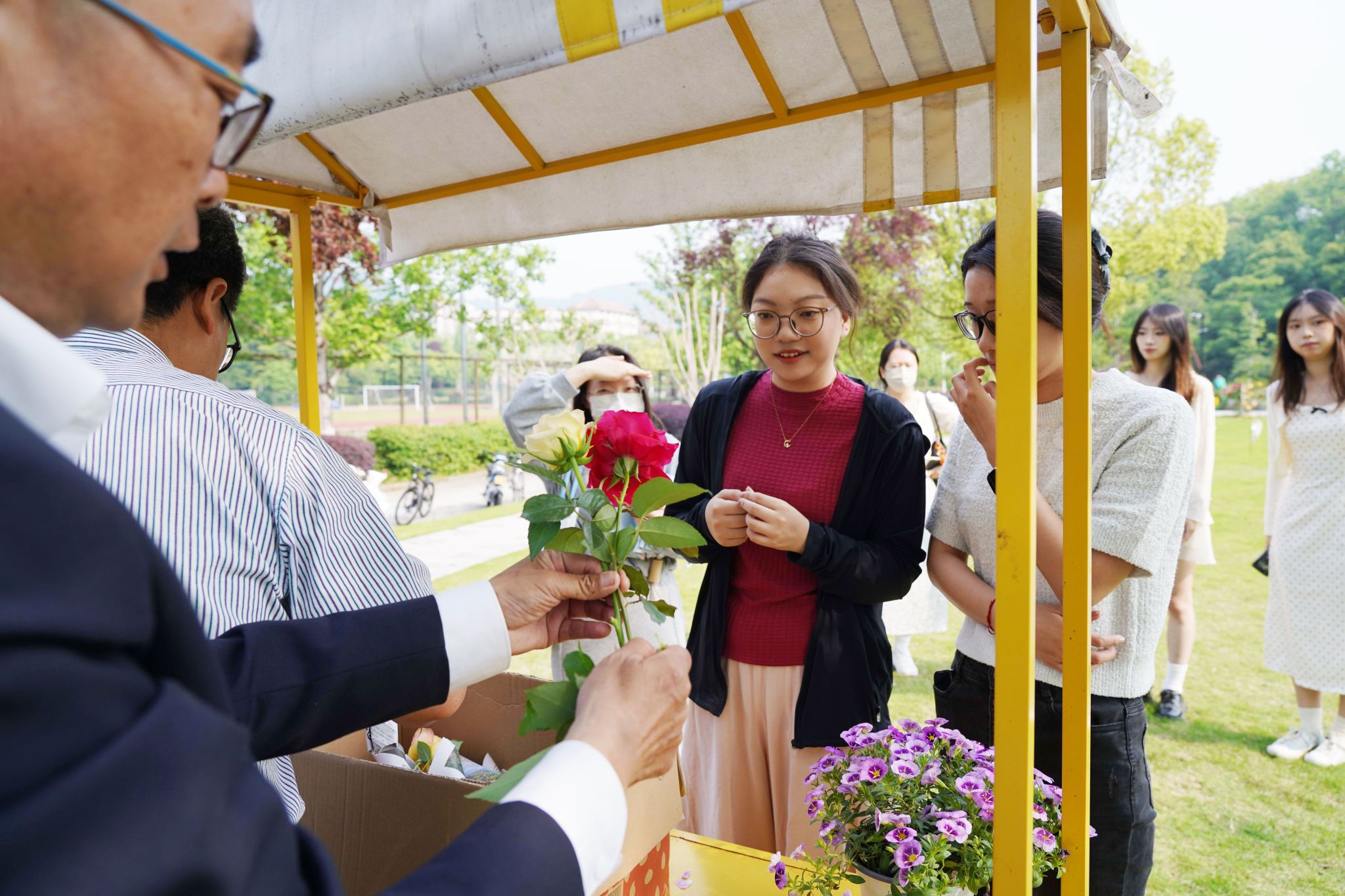 于是,一支支由園林工人修剪下、原本要丟棄處理的月季花,正通過“贈人月季,手有余香”活動,裝點著師生的寢室、辦公室和他們的心情。