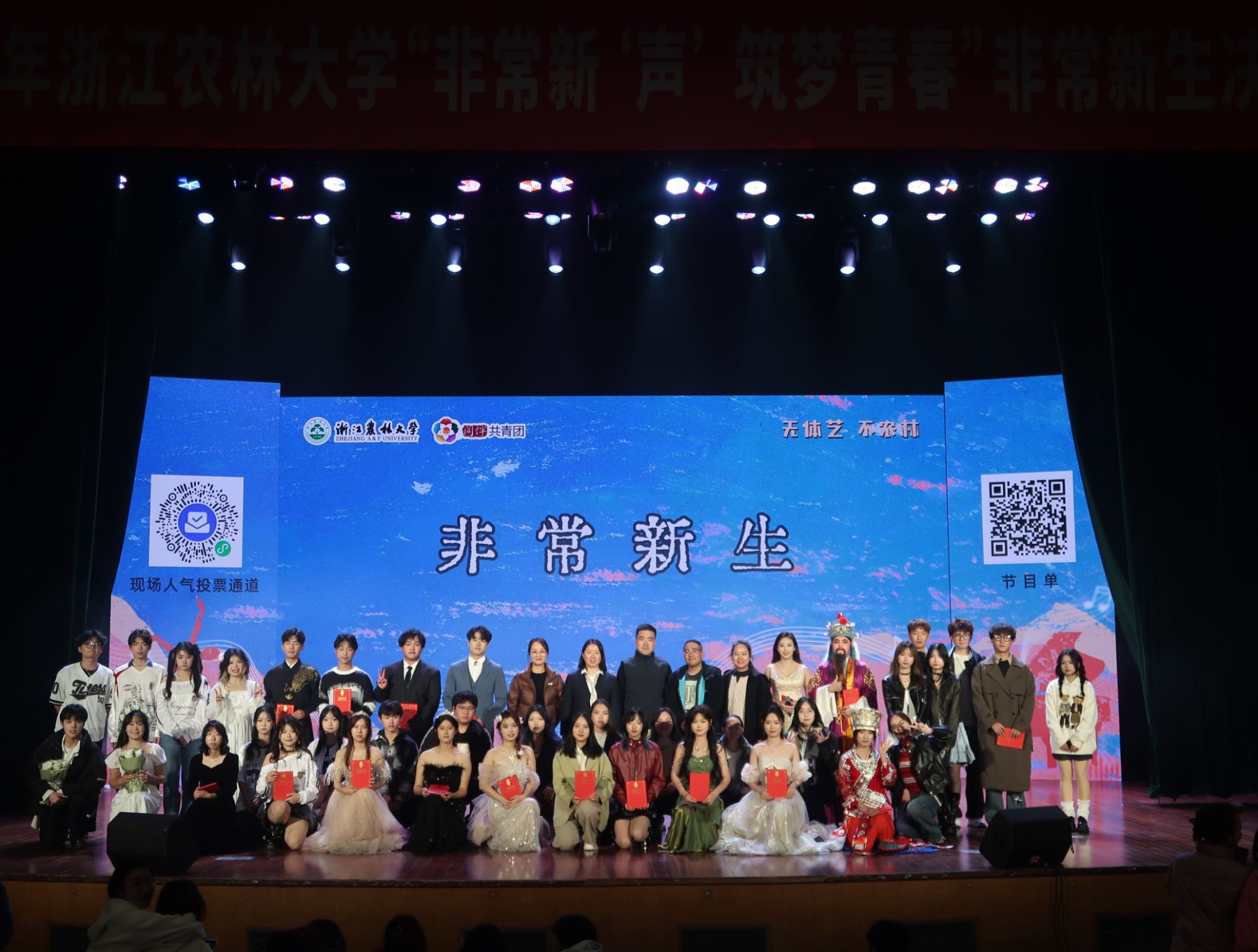 11月30日晚,“非常新‘聲’筑夢青春”2024年浙江農林大學“非常新生”總決賽在東湖校區舉行。校團委書記魏玲玲,藝術教育中心主任、各二級學院團委書記及浙江大學、浙江大學海寧國際校區、中國美術學院、浙江工業大學、杭州電子科技大學、浙江科技大學、浙江水利水電學院、杭州醫學院、杭州電子科技大學信息工程學院的高校學生干部代表出席晚會。千余名師生集中觀看了決賽,為選手加油助威。