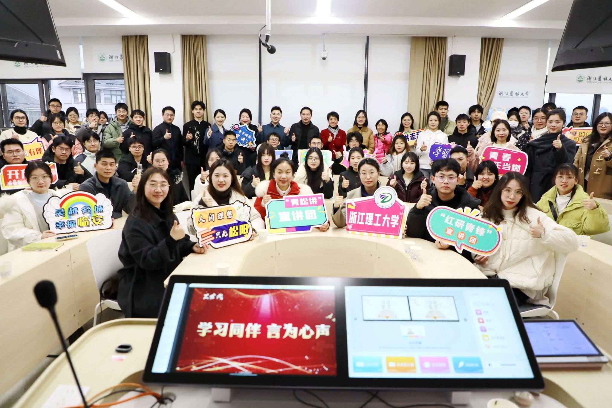 1月7日至8日,由宣傳部牽頭整合馬克思主義學(xué)院、文法學(xué)院和團(tuán)委等校內(nèi)學(xué)院(部門(mén))力量,聯(lián)合臨安區(qū)委宣傳部、松陽(yáng)縣委宣傳部及浙江理工大學(xué)研工部,共同組織的校地“學(xué)習(xí)同伴·宣講走親”系列活動(dòng)成功舉辦。我校宣傳部、教工部部長(zhǎng)晉杜娟,臨安區(qū)委宣傳部部務(wù)會(huì)議成員、社科聯(lián)主席沈向榮,松陽(yáng)縣委宣傳部副部長(zhǎng)、社科聯(lián)主席張松龍,浙江理工大學(xué)研究生管理處副處長(zhǎng)鐘利彬等負(fù)責(zé)人出席活動(dòng)。