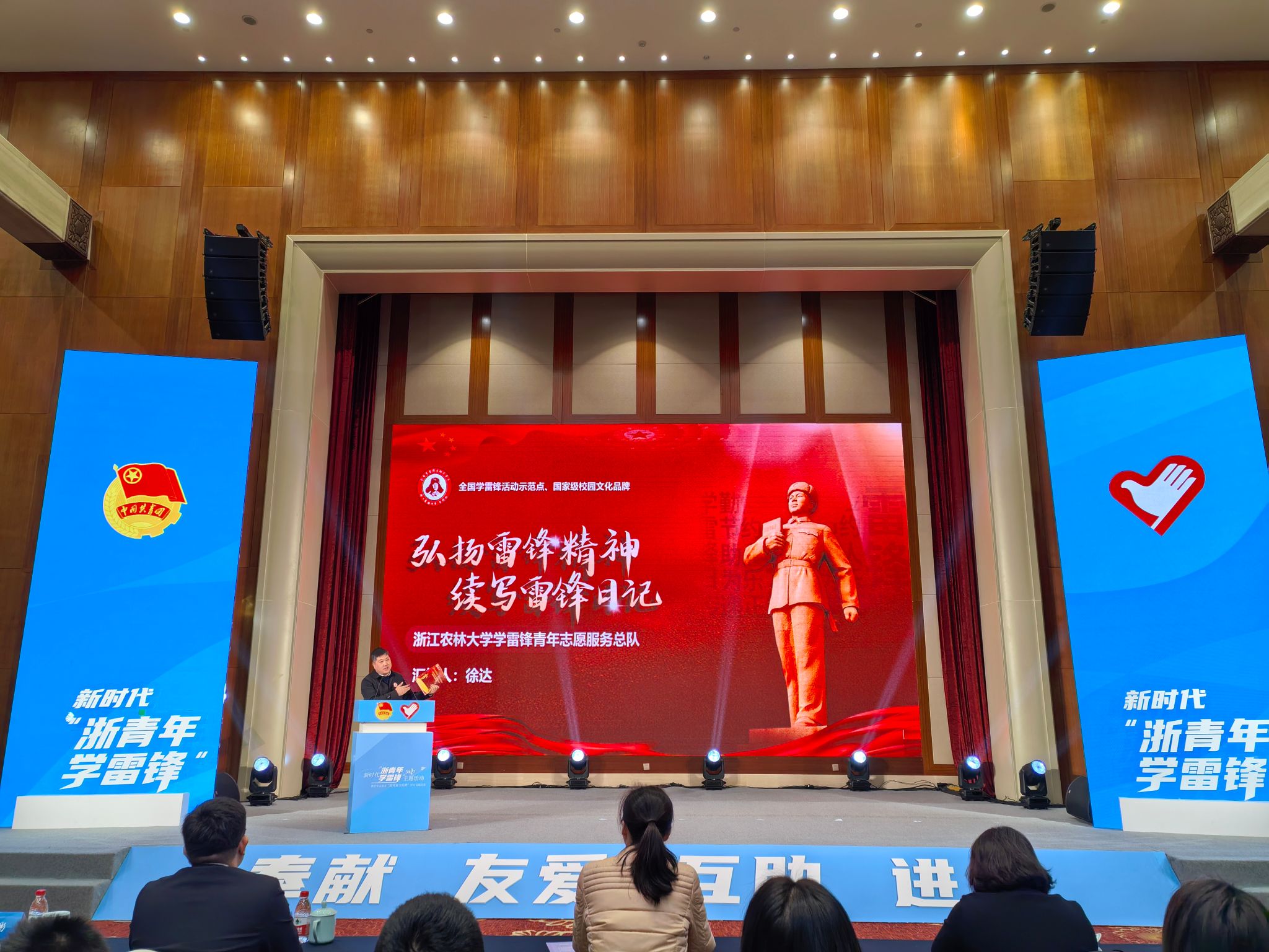 團省委書記周蘇紅出席,省委組織部、省委宣傳部、省委社會工作部、省教育廳相關部門負責人,11個地市團委分管負責人,青年各界學雷鋒代表參會。浙江農(nóng)林大學作為全省唯一受邀高校參加“浙青年·學雷鋒”主題活動,文法學院主持工作副書記徐達在會上作了“弘揚雷鋒精神,續(xù)寫雷鋒日記”主題交流。