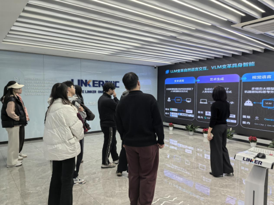 在聯(lián)匯科技展廳,企業(yè)負(fù)責(zé)人向師生展示了公司在多模態(tài)人工智能、大數(shù)據(jù)分析等領(lǐng)域的創(chuàng)新成果,重點介紹了其自主研發(fā)的“OmModel”多模態(tài)大模型在智慧城市、智能客服等場景的應(yīng)用案例,并詳細(xì)解讀了企業(yè)的人才需求方向。企業(yè)負(fù)責(zé)人表示,“算法優(yōu)化能力”和“跨領(lǐng)域?qū)嵺`能力”是當(dāng)前招聘的核心關(guān)注點。現(xiàn)場學(xué)生踴躍提問,圍繞職業(yè)發(fā)展路徑、實習(xí)崗位要求等問題與企業(yè)代表深入探討。