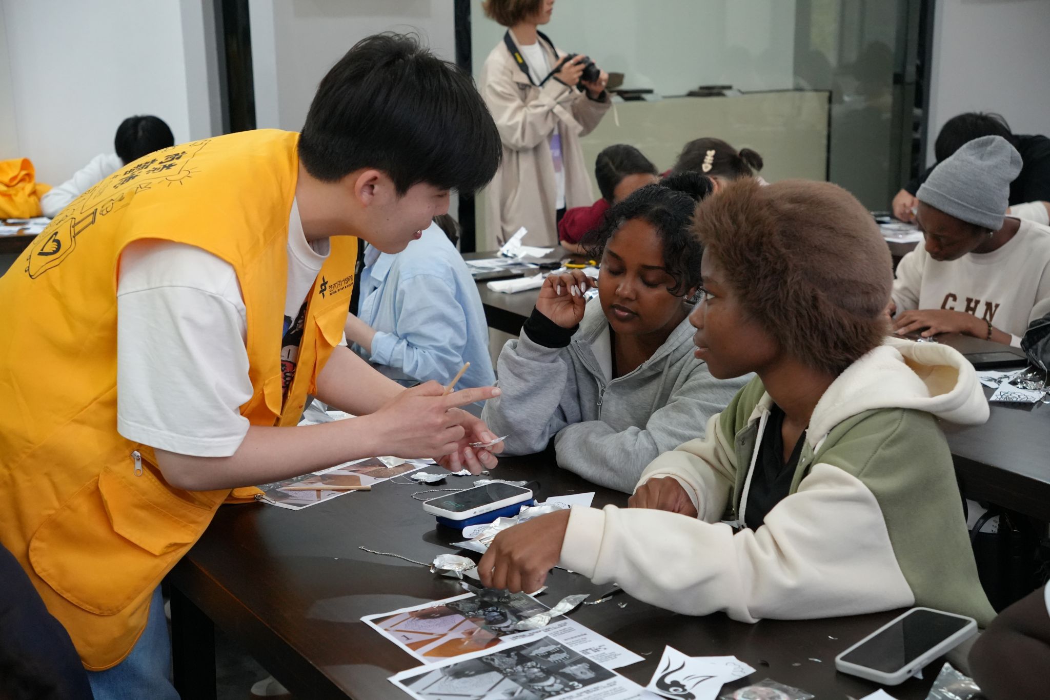 藝術(shù)學(xué)院畬韻非遺文化傳承團(tuán)隊(duì)的課程主講人提到,團(tuán)隊(duì)自2023年起開始探究畬族文化,本次活動(dòng)以“錫紙立體畫”為切入點(diǎn),突破傳統(tǒng)非遺傳播模式,通過(guò)“輕量化教學(xué)”推動(dòng)活態(tài)傳承,讓中外學(xué)生動(dòng)手制作,真正體驗(yàn)“看得見、摸得著、帶得走”非遺文化。參與課程的留學(xué)生們紛紛表示,原來(lái)中國(guó)的傳統(tǒng)文化如此有意思,