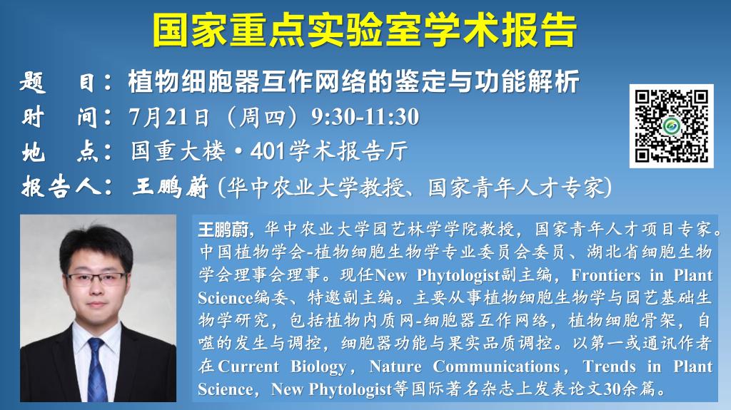 講座預告:植物細胞器互作網絡的鑒定與功能解析