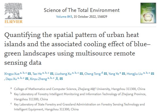 數計學院薛星宇博士發表“城市熱島空間格局及其藍綠景觀降溫效應”高水平研究論文
