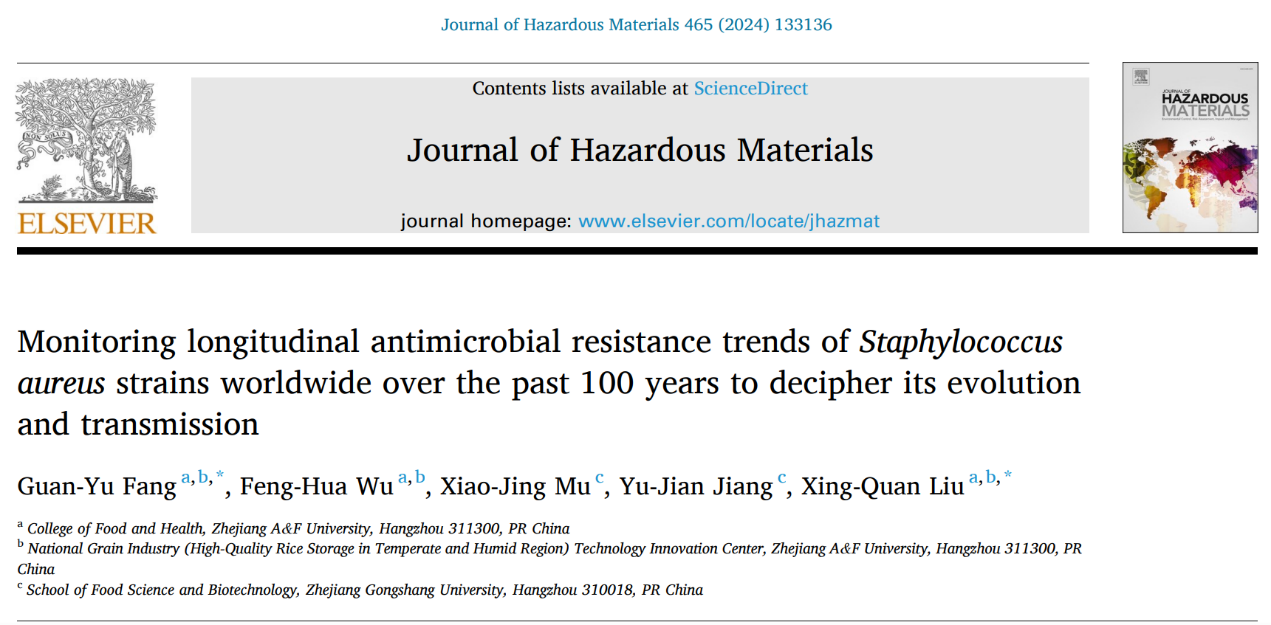近日,食品與健康學院劉興泉教授團隊在國際期刊Journal of Hazardous Materials(中科院一區Top,IF:13.6)在線發表了題為Monitoring longitudinal antimicrobial resistance trends ofStaphylococcus aureusstrains worldwide over the past 100 years to decipher its evolution and transmission的研究性論文。