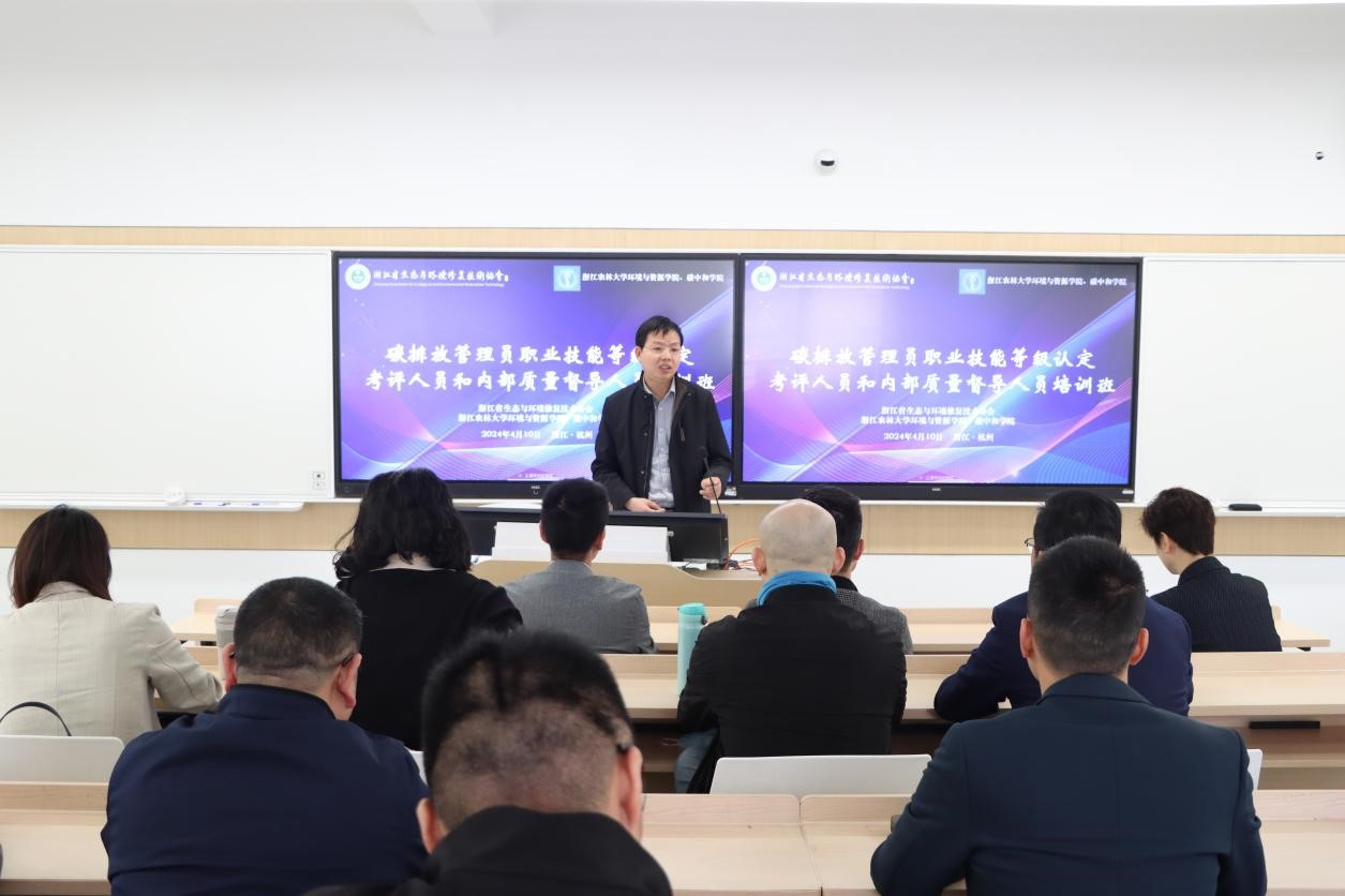 4月10日,由浙江省生態(tài)與環(huán)境修復(fù)技術(shù)協(xié)會主辦,環(huán)資院、碳中和學(xué)院承辦的碳排放管理員職業(yè)技能等級認(rèn)定考評人員和內(nèi)部質(zhì)量督導(dǎo)人員培訓(xùn)班在浙江農(nóng)林大學(xué)東湖校區(qū)成功舉辦。環(huán)資院、碳中和學(xué)院張成、董達(dá)、周昕彥等教師參加培訓(xùn)。