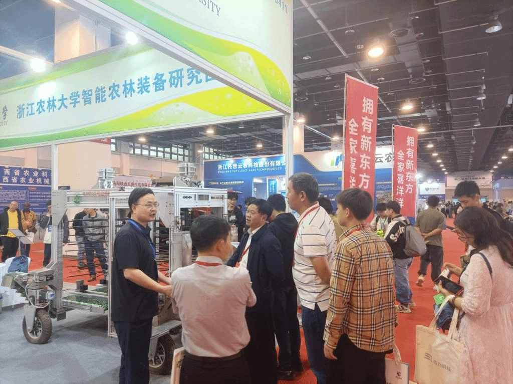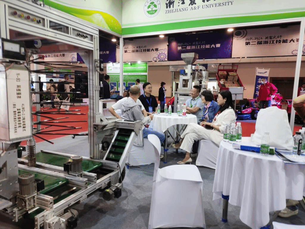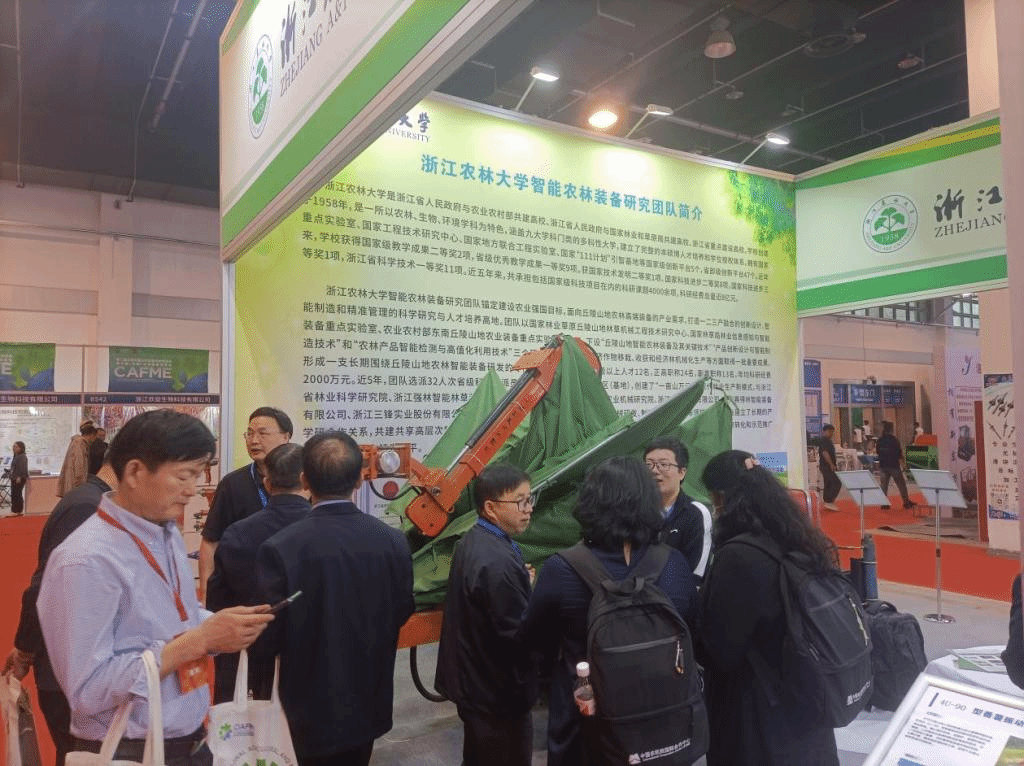 展會期間浙江省科協黨組成員、副主席武傳宇教授、浙江省農業機械學會理事長楊震宇總經理、浙江理工大學俞高紅教授、石河子大學坎雜教授、青島農業大學尚書旗教授、山東理工大學耿端陽教授及Dares kittiyopas(泰國農業工程學會主席)等專家學者饒有興致地來到我校展臺與參展師生深入交流,充分肯定了我校經濟林全程機械化、堅果/漿果機械化采收、農機電動化無人化等農林機裝備研發的技術水平及成效,參展農機也得到了農機合作社、新型農業經營主體、農機推廣部門及消費者的高度關注與好評。