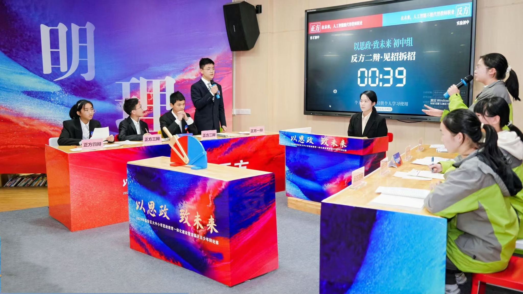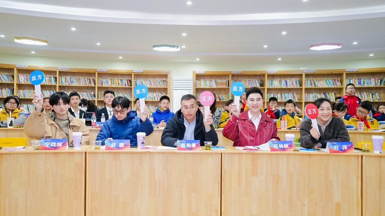 活動前期,馬院不僅參與了賽事規則的制定等工作,還助力組委會精心醞釀和選擇了圍繞思政教育、家鄉發展、學習生活等方向的適合學生的辯題,激發了廣大青少年的深入思考。馬院導師團隊的指導下的天目少年展開激烈辯論,展現了扎實的學識與敏捷的思維,最后馬院評審團隊根據同學們的現場表現給予了中肯的評價和有針對性的提升建議。