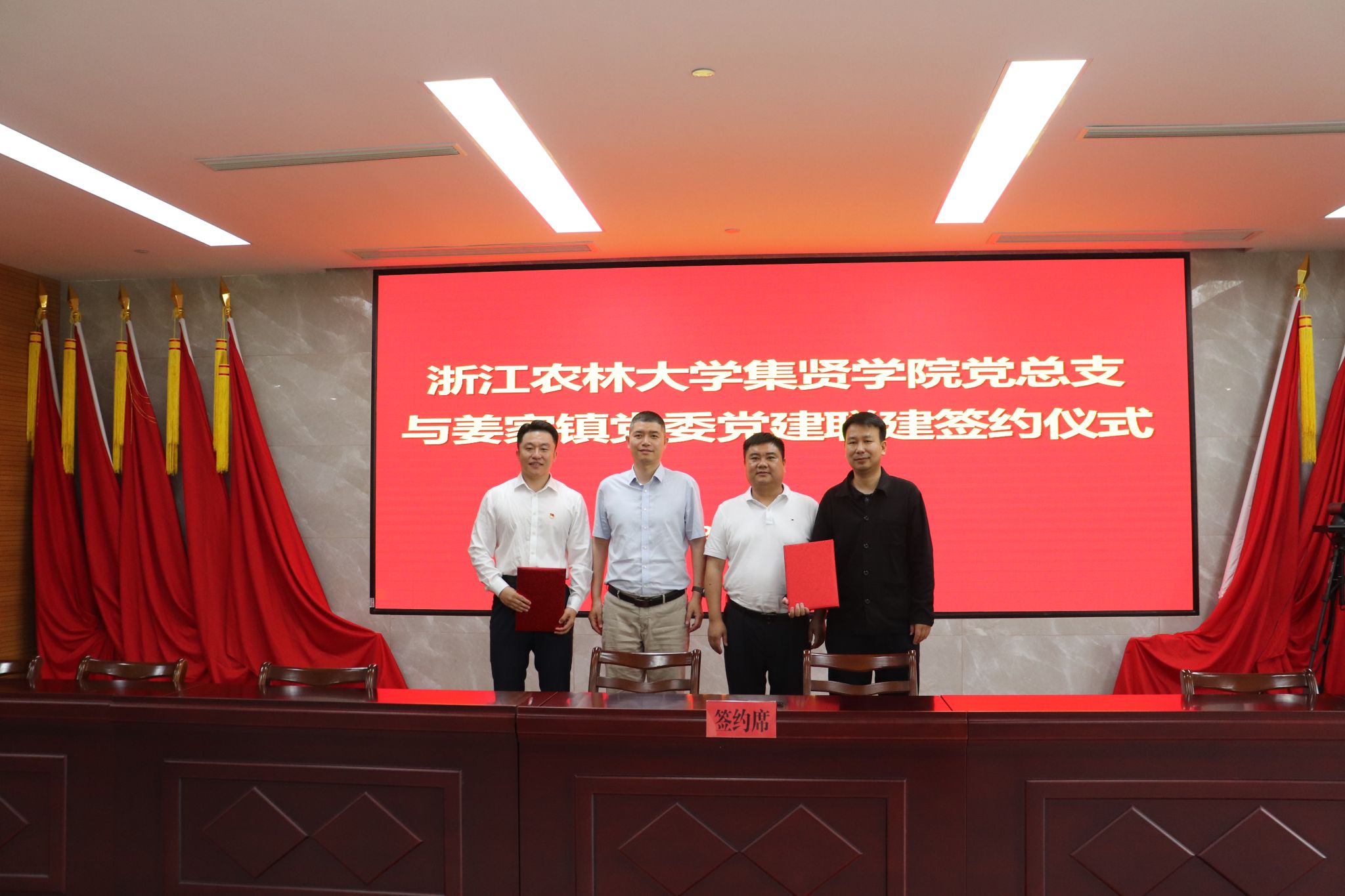 為進一步深化合作,集賢學院黨總支與姜家鎮黨委現場簽署《黨建聯建協議書》。雙方將堅持“優勢互補、資源共享、互惠互利、合作共贏”原則,通過開展短期實習、舉辦定向生座談、聘任鄉土專家為校外導師等形式,推動黨建工作與人才培養和地方產業發展深度融合。