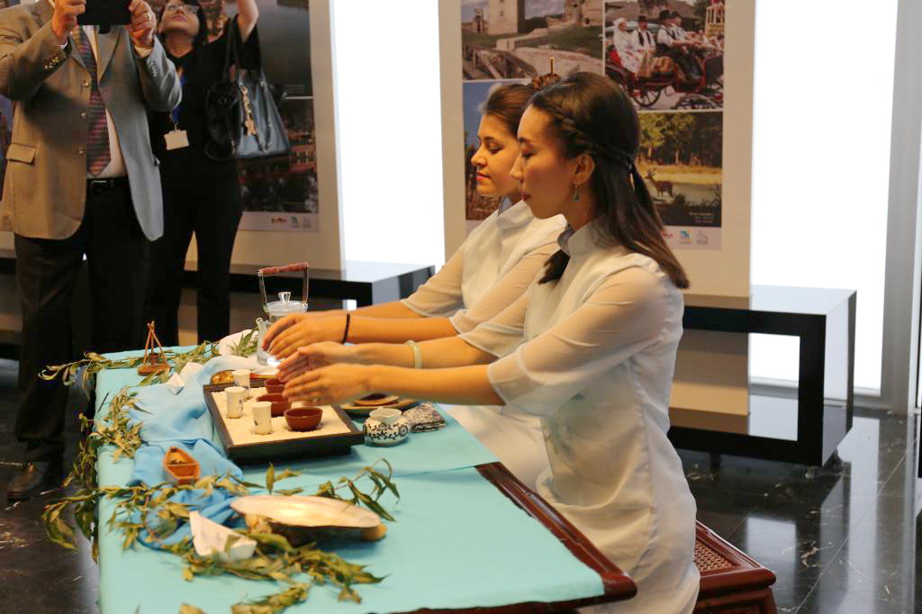 諾大孔院中國志愿者教師王曉玲和塞國學生斯爾佳娜·佩特瑞維奇(Srdjana Petrovic)優雅嫻熟地完成溫杯、投茶、沖茶、聞香、奉茶等環節,透射出茶之廉美和敬的品性和婉約清柔的魅力,傳遞著中國茶文化含蓄謙和的包容精神。塞爾維亞伏伊伏丁那省省長義果·米洛維奇(Igor Mirovic)和諾維薩德市市長米洛斯·武契維奇(Milos Vucevic)不時點頭贊許,細細品盡茶湯。現場嘉賓報以熱烈的掌聲。