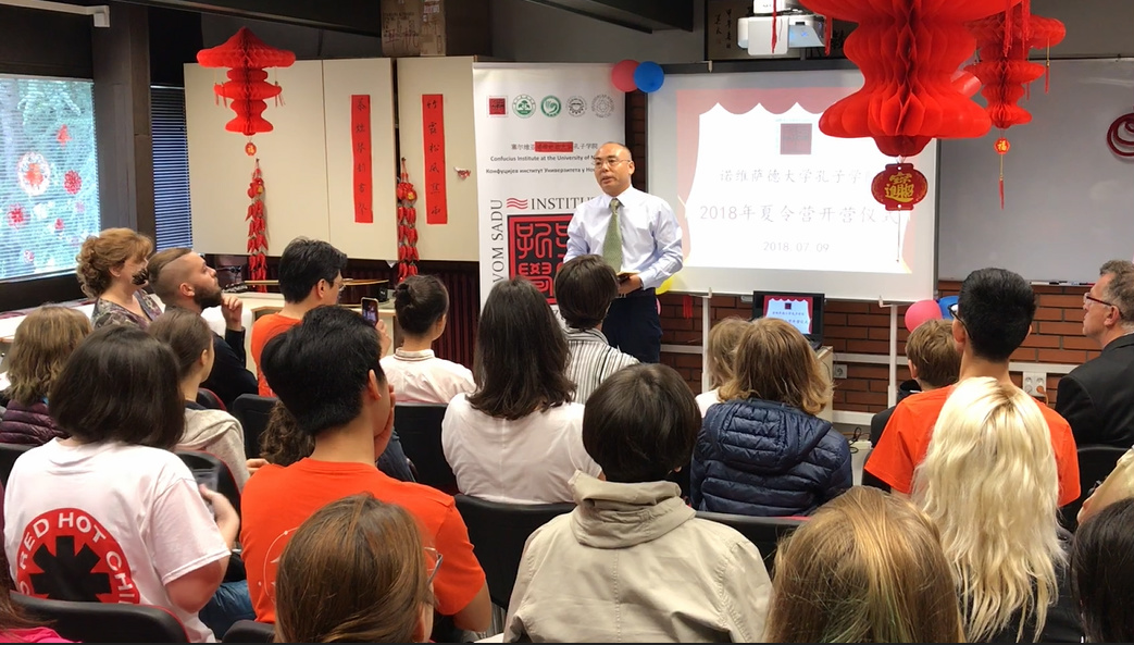 當?shù)貢r間7月9日,塞爾維亞諾維薩德大學孔子學院2018年本土夏令營在諾大哲學院舉辦開營儀式。此次夏令營主要開設初級漢語課程、書法、太極拳等課程。