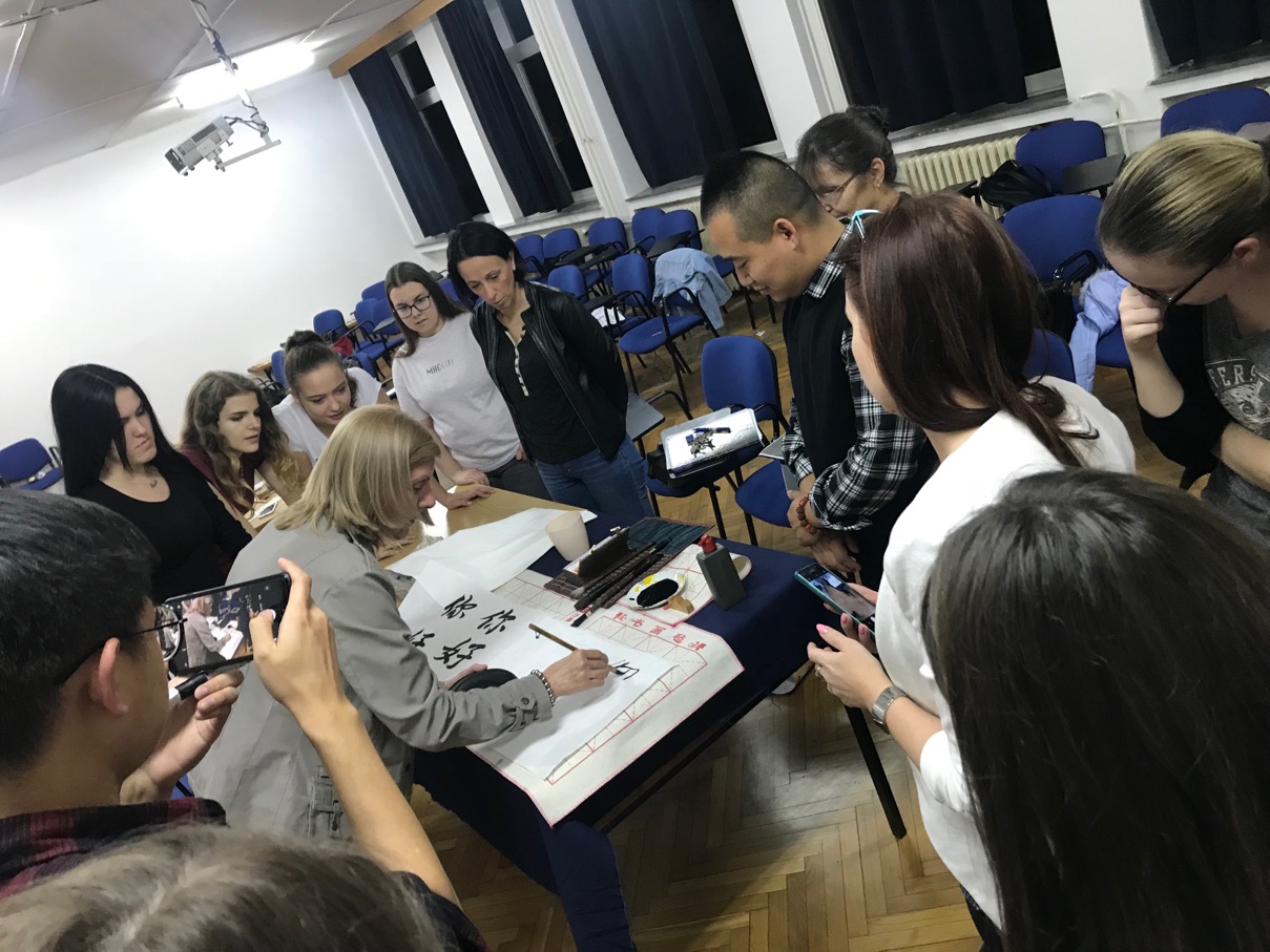 近日,諾維薩德大學孔子學院在諾大哲學院、諾維薩德市醫學高中(Medical High School)、卡爾洛夫茨語言高中(Karlovic Grammar School)、沙巴茨高中(Sabac High School)和諾維薩德大學蘇博蒂察經濟學院(Facultyof Economics Subotica)舉辦書法篆刻體驗系列活動。這是中國篆刻藝術首次來到塞爾維亞,吸引了眾多孔院學生參與活動。